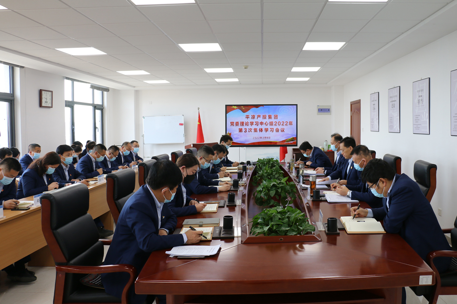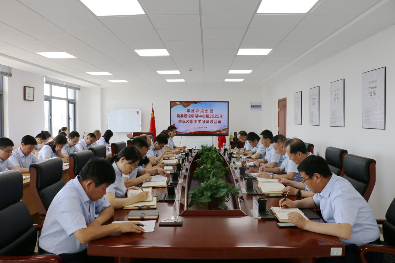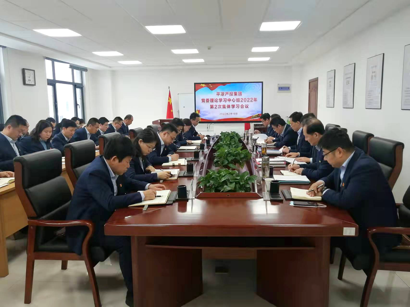 2022-02-102月10日,市产投集团召开党委理论学习中心组2022年第2次集体学习会议。会议学习了习近平总书记在中共中央政治局第三十六次集体学习会议上的重要讲话精神,中共甘肃省第十三届纪律检查委员会第六次全体会议精神、甘肃省第十三届人代会第六次会议精神、政协甘肃省