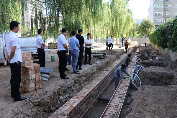2017-08-158月14日,公司党委委员、副总经理于彦辉带领公司综合办公室、项目办公室、房地产公司、新能源公司、广告传媒公司检查公司重点项目建设工作。图为定北路充电站项目建设现场检查组先后深入定北路充电站项目、马坊路道路工程项目、供热工程项目现场,实地查看了项目建设